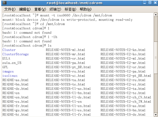 该命令将光盘挂载到/mnt/cdrom目录,使用“ls /mnt/cdrom”命令即可显示光盘中数据和文件。