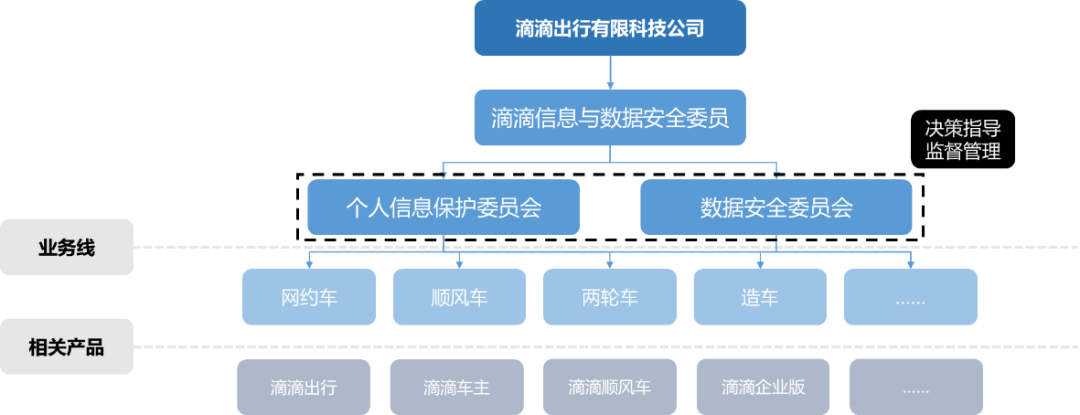 其通过滴滴信息与数据安全委员会及其下设的个人信息保护委员会、数据安全委员会,参与网约车、顺风车等业务线相关行为的决策指导、监督管理,各业务线违法行为是在该公司统一决策和部署下的具体落实。
