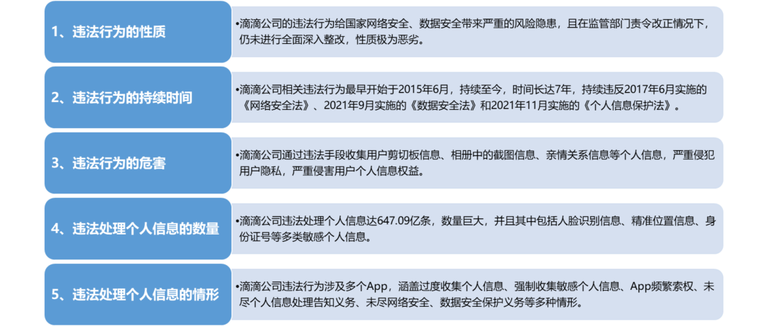 1、违法行为的性质。其违法行为给国家网络安全、数据安全带来严重的风险隐患,且在监管部门责令改正情况下,仍未进行全面深入整改,性质极为恶劣。