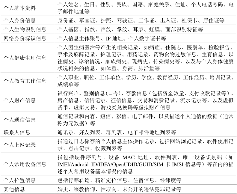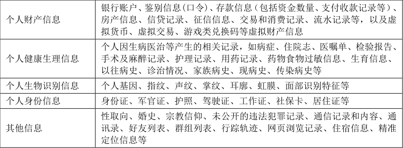 个人敏感信息示例