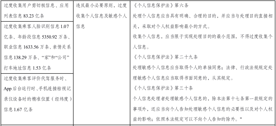 2、违法行为的持续时间。其相关违法行为最早开始于2015年6月持续至今,时间长达7年,并持续违反2017年6月实施的《网络安全法》、2021年9月实施的《数据安全法》和2021年11月实施的《个人信息保护法》。