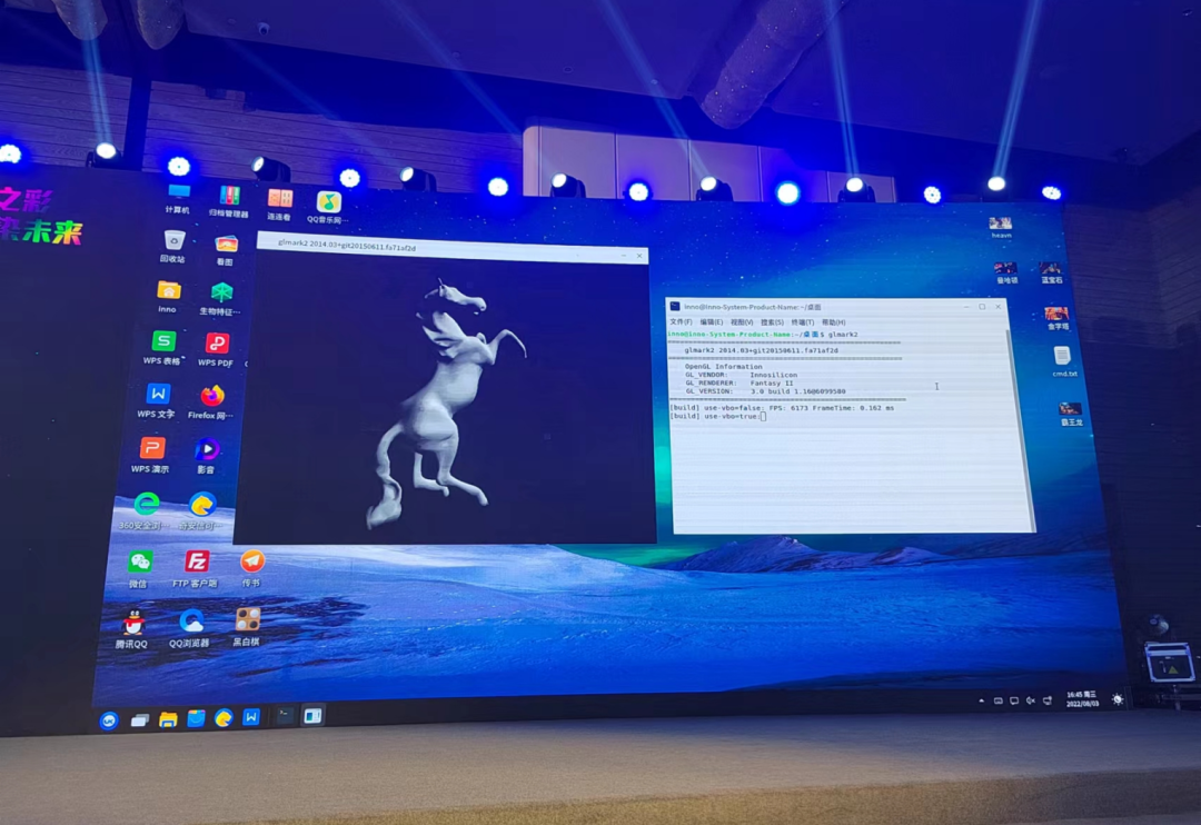 发布会上,芯动科技呈现了“风华 2 号”在办公桌面、工控、笔电、智能座舱、头盔、GIS 等多种重度场景下的卓越表现,以及重度图形渲染、AI 超分 / 边缘计算、高清多屏显示、各种主流 CPU 和 OS 的现场演示。在现场产品demo演示环节,搭配银河麒麟操作系统,展示了风华2号产品在重度图形渲染、AI计算、基准测试等场景下与操作系统紧密配合的丰富场景和性能优势,体现真正硬核实力。