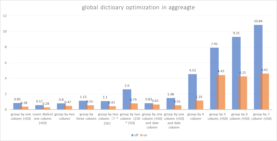 对于这条 SQL 来说,使用 int 值替代 String 来进行聚合,所带来的提升是巨大的,我们应该发挥全局字典的最大价值。