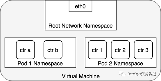 对 Pod1 来说,eth0 通过虚拟以太网设备(veth0)连接到 root namespace;