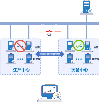 数据库应用无缝容灾切换场景下,英方 i2Availability 在数据层,基于磁盘镜像方式实时捕获生产数据并复制到目标服务器;应用层,实时监控运行状态,若出现异常导致业务不可达时,将应用切换到目标服务器上,通过应用接管实现业务的连续性。