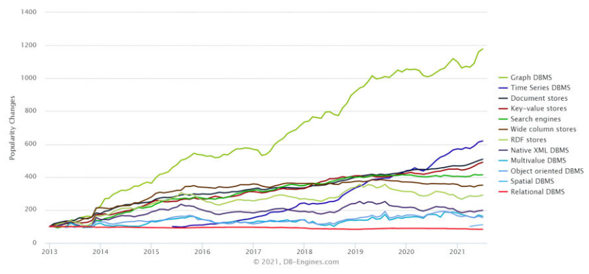 图1 数据库技术发展趋势(截至2021年6月)来源:DB-Engines