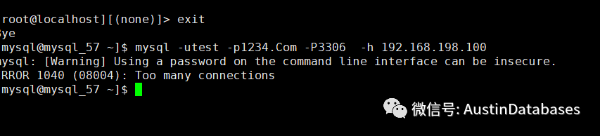 我们开了一个SESSION 又开了一个 报错, 这个是自然的, TOO MANY CONNECTIONS