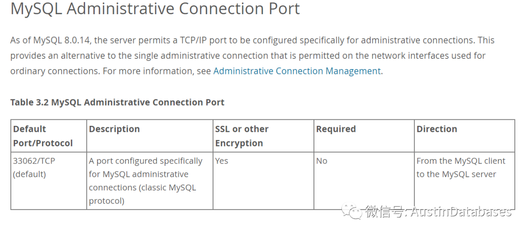 那么MYSQL 官方版本如何解决这个问题, 实际上在MYSQL 8.014这个版本提供了administrative connection port 这个功能.