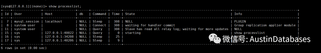 WHERE USER not in ('root','sys','repl','proxysql','mha','event_scheduler')