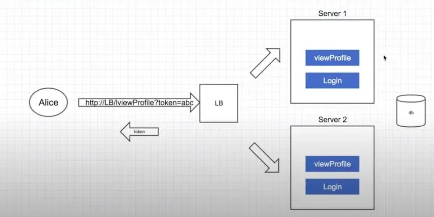 客户端可以使用令牌并向 Web 服务器发送请求。此 Web 服务器将请求连同令牌一起发送到任意后端服务器,而每个后端服务器都能提供相同的所需结果。