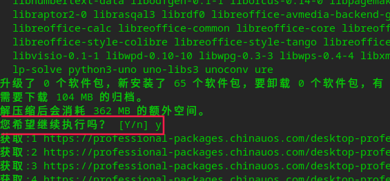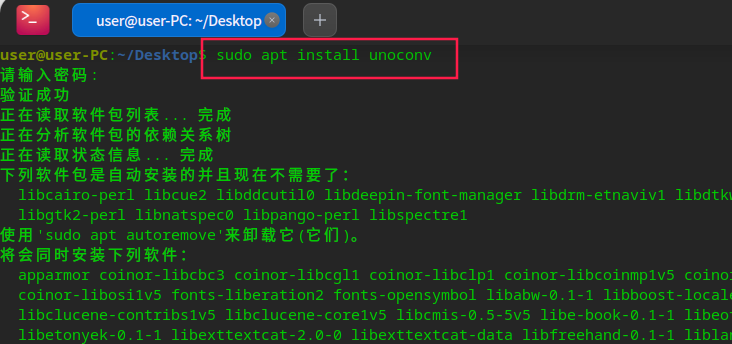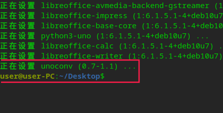 4.出现下图所示字样,表明系统已成功安装unoconv。