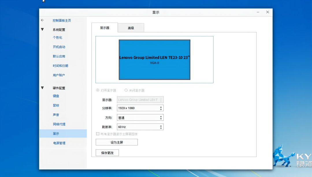 V10 SP1:鼠标点击【开始】-【设置】-【系统】-【显示器】。