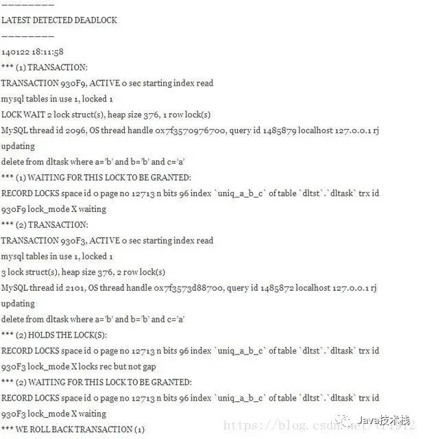 做了这么多铺垫,有了Delete操作的3种加锁逻辑、InnoDB的死锁预防策略等准备知识之后,再回过头来分析本文最初提到的死锁问题,就会手到拈来,事半而功倍。