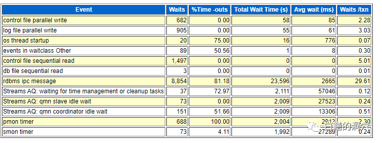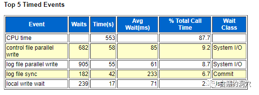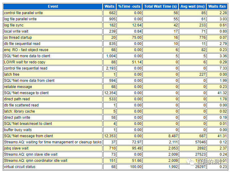 这是一个几乎没有负载的小系统,从load profile上看,负载几乎微乎其微。不过从等待事件上看,这个系统存在比较多的问题: