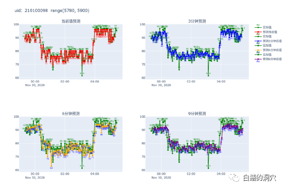 在这个案例里,3分钟预测在0:21分再次正确的预测到了这个健康状态的下降,比我们的专家模型提前了3分钟。从数据上看,健康状态预测模型预测的分值的准确度下降了,但是对于趋势的预测吻合度大大提高了。特别是在系统有问题的时候,对于健康状态突降趋势的预测准确度比以前的算法有了很大的提高。所以虽然MSE比以前差了很多,但是实际预测效果却好了很多。