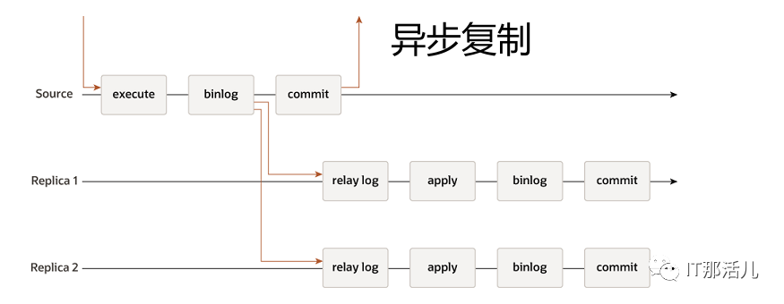 该架构模式下:应用发来的事务请求,经过执行之后写入 binlog,主库把 binlog日志推送给从库,主库不需要等到从库是否成功更新数据到 relay log,主库直接提交事务即可。