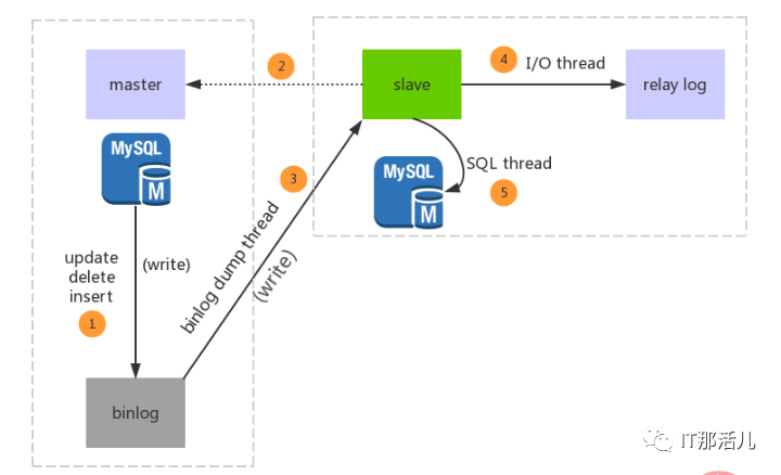 传统的 MySQL 主从复制架构是 MySQL 保持数据一致性的最基本架构,如下图所示,从库给主库发起读数据请求后,主库会通过 dump线程把 binlog 日志文件推送给从库,从库的 I/O 线程把接收到数据更新到 relay log,之后从库的 SQL 线程把 relay log 应用为 binlog 日志,直到主库与从库的 binlog 日志文件完全数据一致,达到主从同步。
