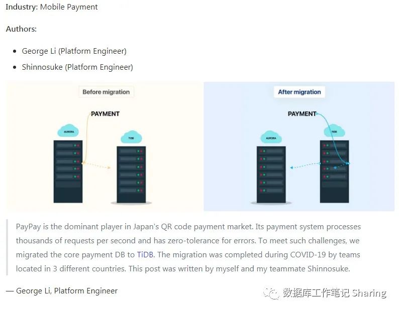 PayPay migrated the core payment database from Aurora to TiDB,a scalable distributed database with high availability and cross-region replicas. and since the migration, the payment system can now support 3 times throughput compared to before