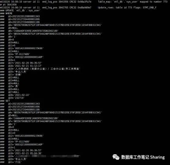 mysqlbinlog -v --base64-output=decode-rows --stop-position=3042765 /data/mysql/data/master-binlog.000001 | tail -20