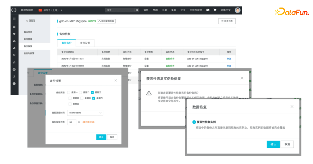 数据进行周期性备份,当数据发生损坏或者丢失,可一键恢复。