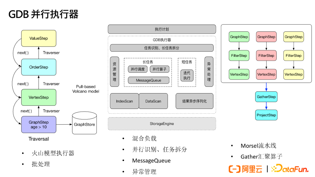 参考火山模型以及NUMA的Morsel并行执行算子。GDB主要是采用了火山模型的执行器,每次返回数据采用批处理的格式。一个Traversal针对一批数据。
