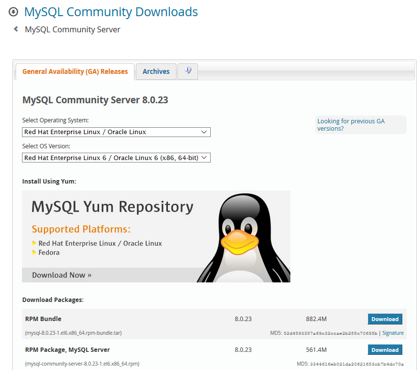 下载MySQL RPM 程序包