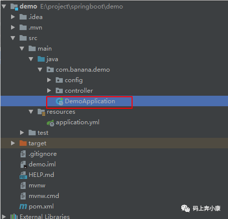 创建好项目之后下载,通过idea打开,找到DemoApplication运行即可使用
