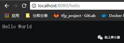 package com.banana.demo.controller;import org.springframework.web.bind.annotation.GetMapping;import org.springframework.web.bind.annotation.RestController;@RestControllerpublic class HelloWorldController {@GetMapping("/hello")public String index() {return "Hello World";}}