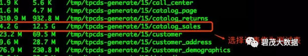 使用hive-testbench生成15GB测试数据,挑选catalog_sales表做为测试表