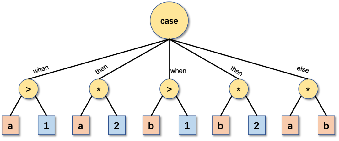 由于标量化表达式按照volcano结构编排,并提供了统一的next()的接口,case表达式必须执行完所有的子表达式a>1,a*2,b>1,b*2和a*b之后,将全部结果汇总到一起,最后做case语义处理。这种执行方式不能根据when表达式的处理结果及时终止计算过程,而是对全部子表达式无差别执行。