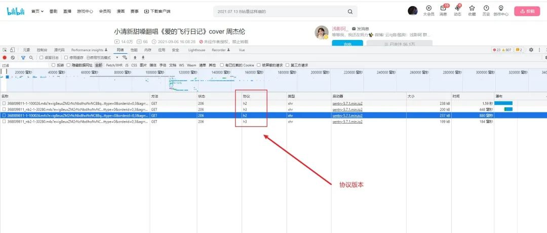 写这篇文章的时候我在听B站UP主翻唱的歌曲,然后我心血来潮打算看看B站现在用的是HTTP的哪个版本,于是我摁下了F12键。