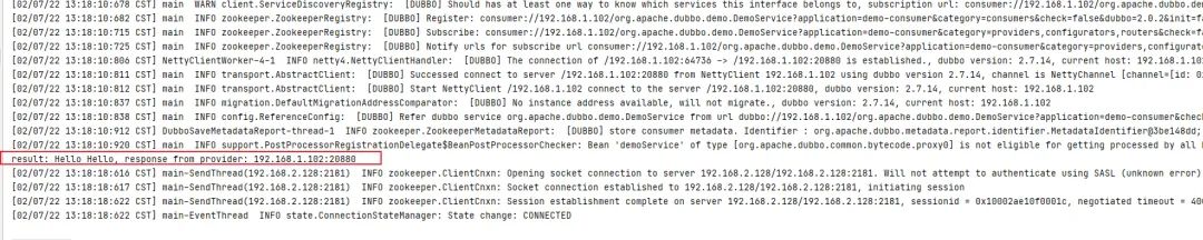 logger.info("Hello " + request.getName() + ", request from consumer: " + RpcContext.getContext().getRemoteAddress());