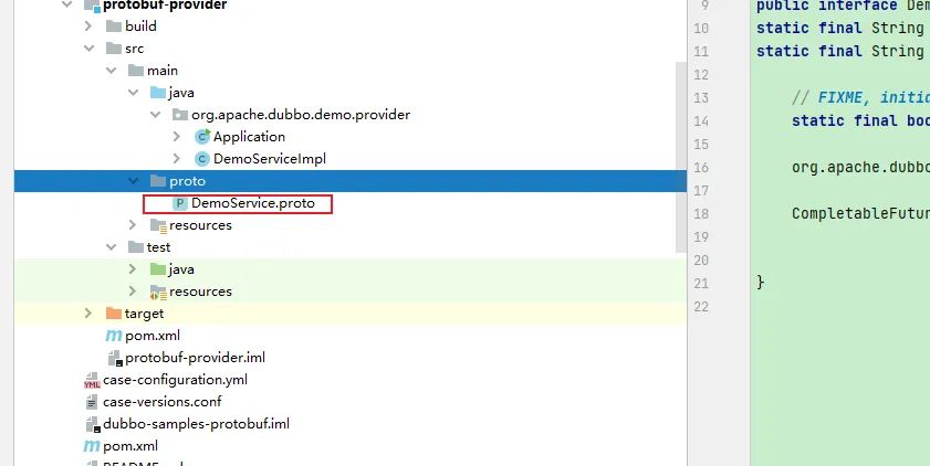 Dubbo官方推荐使用IDL,那我们还是使用官方的示例,来定义服务。官方提供了示例: