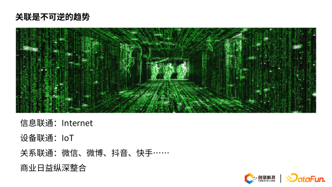 世界万物是普遍联系的,Internet带来了信息的联通,IoT带来了设备的联通,微信、微博、抖音、快手等APP将线下的社会关系转移到了线上,形成更加广泛的人际关系的联通。随着社交、零售、金融、电信、物流等行业的快速发展,在人们的生产生活中,每时每刻都产生着大量的数据,促使当今社会支起了一张庞大而复杂的关系网。随着技术的发展,我们对这些数据的分析和使用,不再局限于从统计角度分析相关性,而是希望从关联的角度,揭示数据的因果联系。