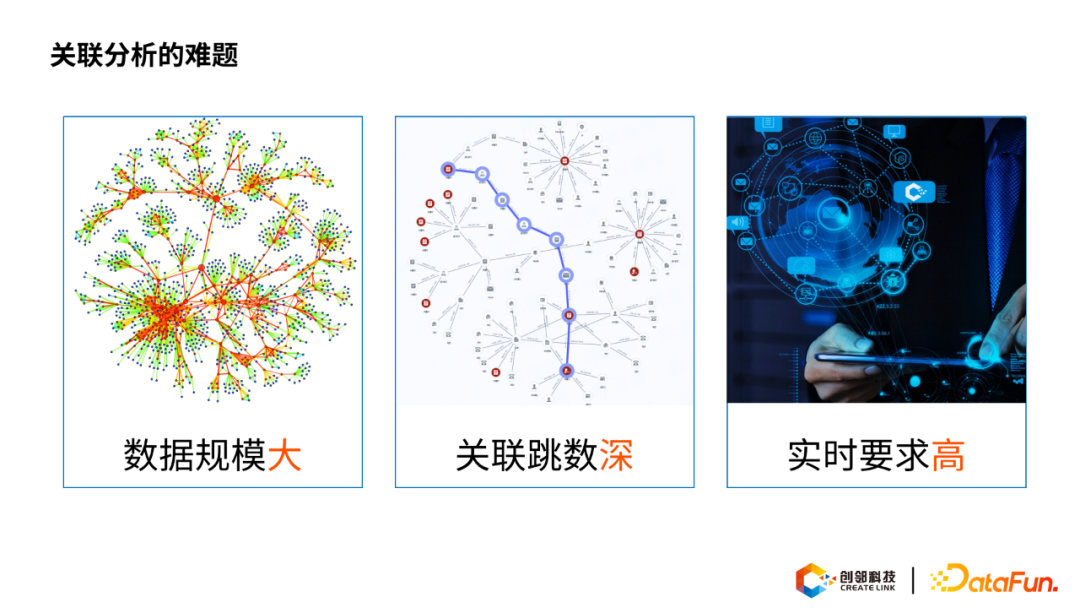除了数据规模大,关联跳数深以外,关联分析还有一个特性就是实时要求高。比如电信欺诈问题,我们接到一个诈骗电话,最好是在几秒内甚至是还正在响铃还没有接起电话时,就能进行诈骗预警。如果把这些呼叫数据拿出来,放到离线分析系统中跑批计算,得到结果可能已经是一周以后了,这样起不到防范效果。又比如疫情精准防控,也是越快越准地定位密接人群,效果就越好。在这些数据规模大、关联跳数深、实时要求高的场景中,传统的数据存储、查询、分析、计算方式都不能很好地完成任务。