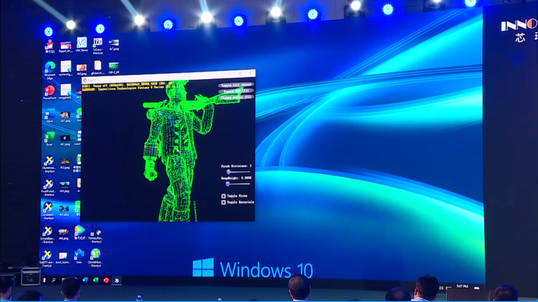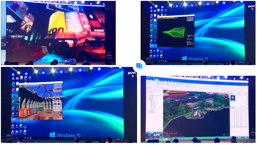 “风华2号”还实现了多平台兼容,“风华2号”与统信和麒麟等操作系统完成互认证, 并全面支持飞腾、龙芯、申威、海光、兆芯、鲲鹏等主流国产CPU平台,现场演示了其在飞腾D2000+统信系统上进行苍穹GIS空间地图实时渲染,画面栩栩如生,令人身临其境。更让人惊喜的是,“风华2号”已经流畅支持微软Win10 DirectX图形框架,芯动科技DirectX首席软件架构师章涛表示, “Windows DirectX 11严格要求支持包括曲面细分在内的各种高级渲染技术,开发难度极大。至今,全球只有少数几家公司的GPU支持了Windows DirectX 11。 ”工程师现场演示了Win10操作系统下的QQ通讯、办公上网和娱乐游戏等各种应用,完美实现了多种复杂场景的流畅渲染和曲面细分的细节呈现,3D渲染性能完全能够满足日常工作娱乐所需,具备强大的一站式适用性。