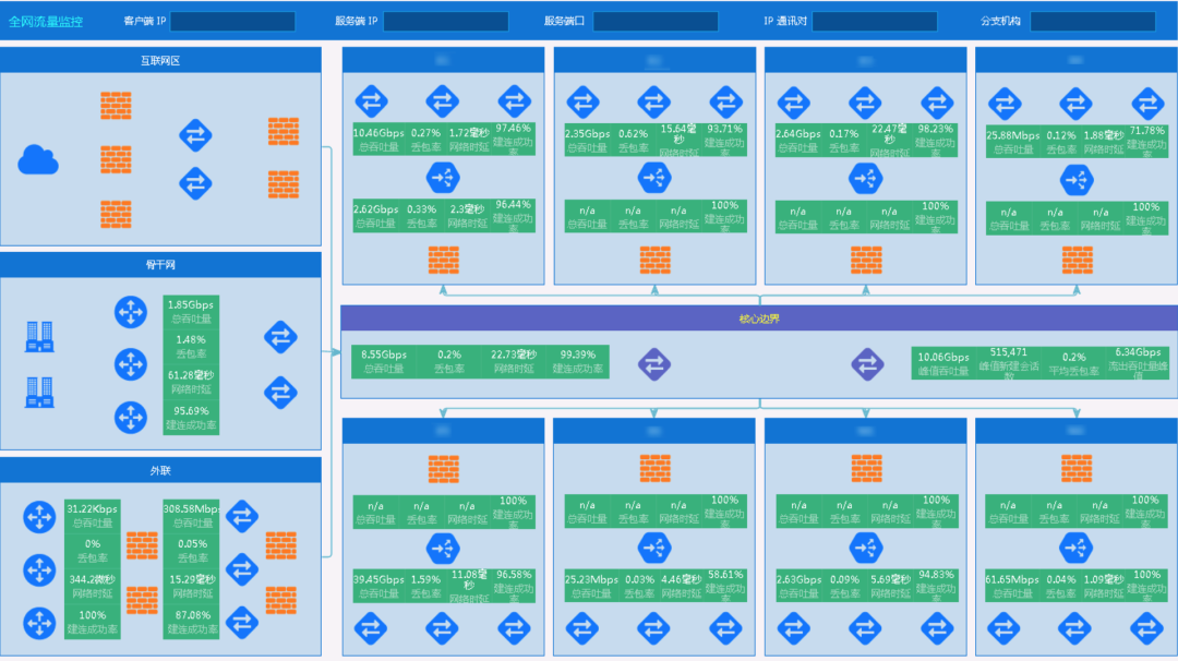 针对网络环境复杂、业务系统多层级架构部署等情况下,通过采集网络中各关键节点的业务流量,以应用、系统、网络所关注的TCP连接、应用响应、网络吞吐、数据包传输等各维度,监控各项指标参数,对关键业务系统进行业务流的端到端可视化监控、对网络路径进行全流量跟踪监控,实现故障快速定位、疑难杂症解决、趋势提前预警。