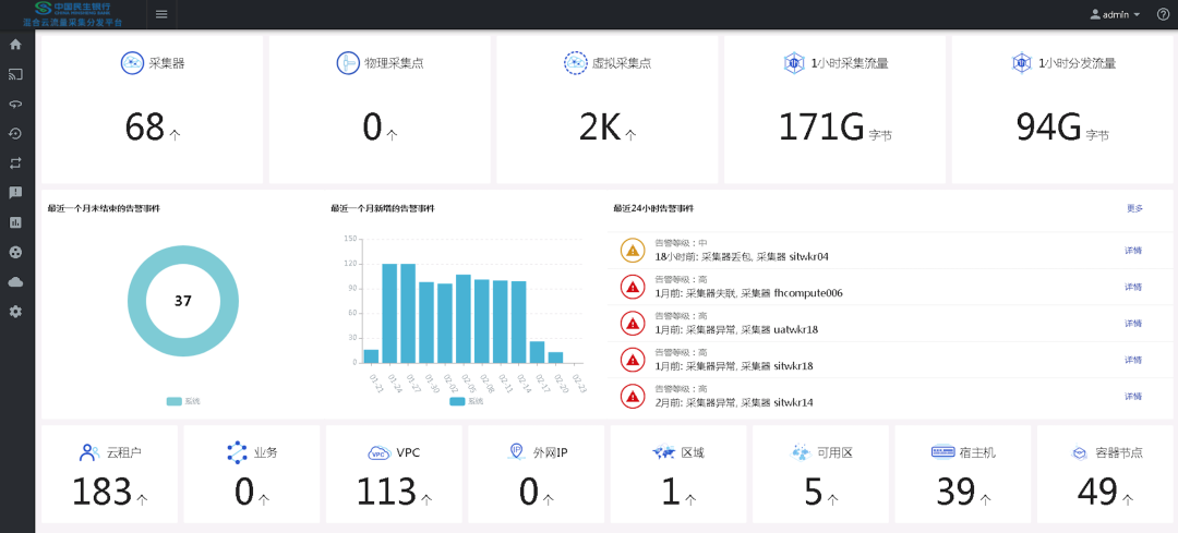 随着IT基础设施、业务应用逐渐向容器、云、虚拟化迈进,上云业务规模逐渐增加,混合云中网络架构变的更为复杂,云环境下的KVM、ESXI、容器等各类动态资源池内网络和应用性能同样需要实现可视化的监控。我行也一直致力于研究VMware、Openstack、容器云环境下的流量采集,最终通过轻量级部署虚拟采集器,实现云网络环境流量采集、分发和可视化功能。通过统一的管理平台可动态展现云环境资源情况,同时支持流量统计、性能监控等各项指标监控功能,形成关联IaaS资源、PaaS资源、服务应用等全面可视化的监控图谱。