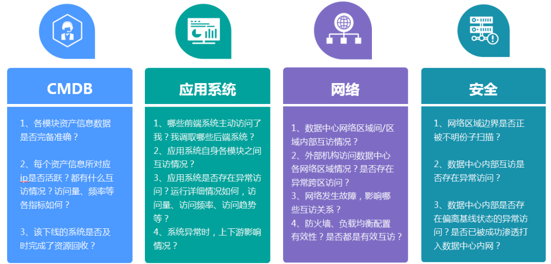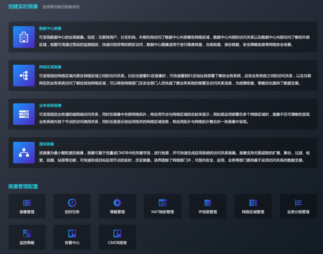 基于网络流量、日志、配置、CMDB资产等信息作为数据源,网络流量可视化运营平台通过采集各类基础信息,根据需求定制化各类场景