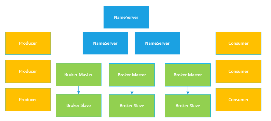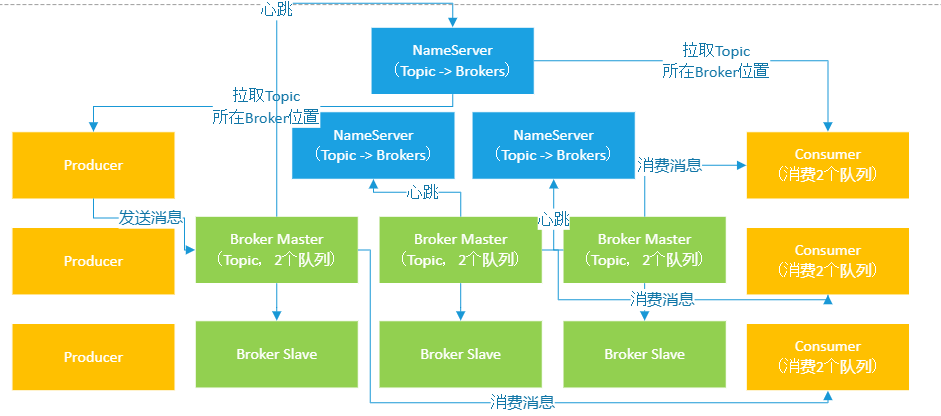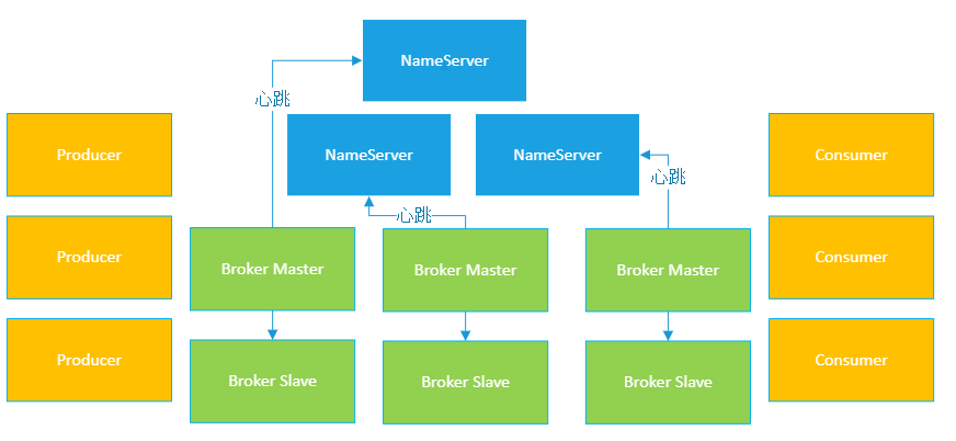其中NameServer相当于集群管理服务,主要用于管理整个集群的元数据以及对集群进行管理的。