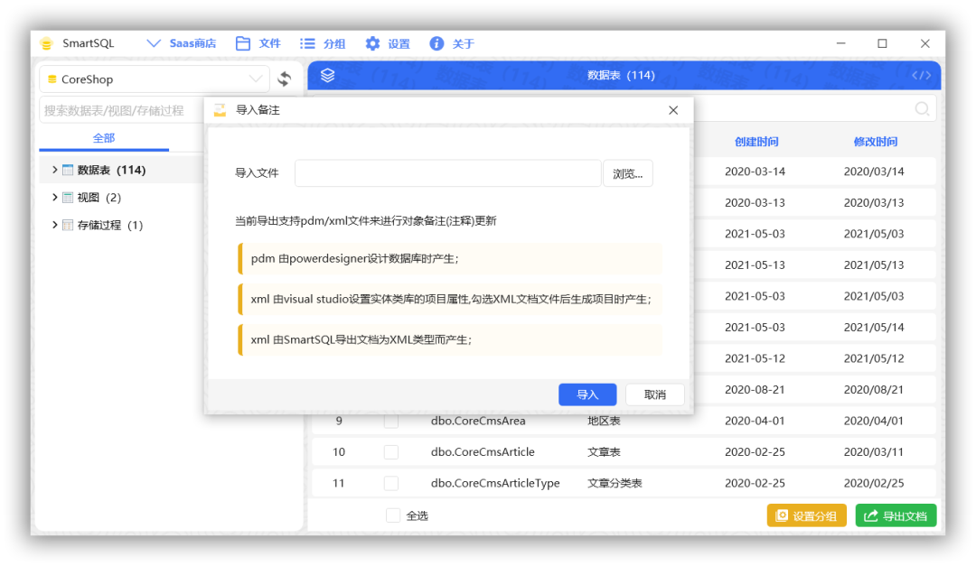 就可以选择刚刚的xml文件,如果数据库表结构相同,批注就会更新到目标数据库服上。