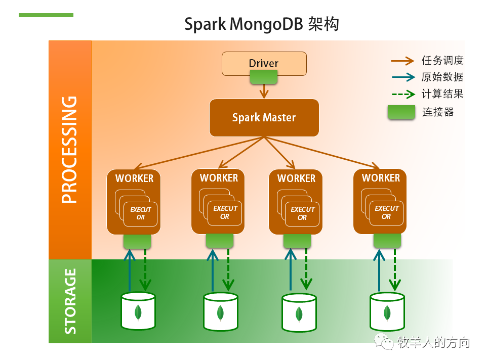在Spark生态系统中,HDFS作为存储可以使用MongoDB来替代,构建成Spark+MongoDB生态系统。MongoDB作为文档存储型数据库,支持HDFS没有的索引概念,响应时间为毫秒级别,同时可以利用强大的aggregate函数做数据的筛选和预处理。