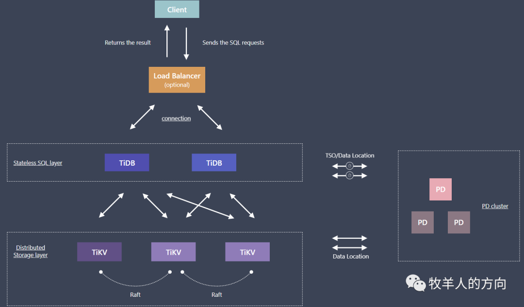 用户的SQL请求会直接或者通过 Load Balancer发送到TiDB Server