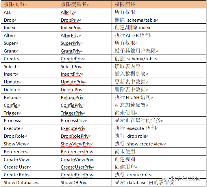tables_priv:表级的权限