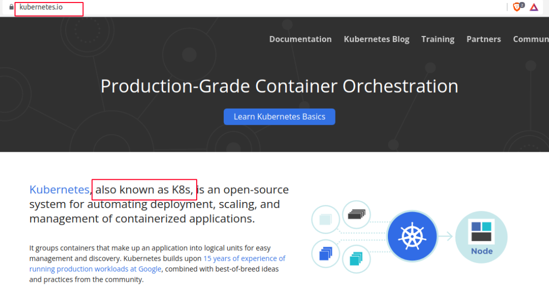 除了 K8s 外,还有人直接将后面的 s 省略掉,直接简写为 K8,这两种方式都是可以的。但实际在 Kubernetes 的官方文档中,你会发现 Kubernetes 被简写为 K8s: