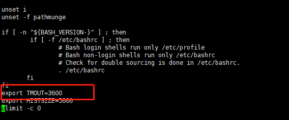 第1步 设置SSH超时时间并打开SSH保活配置, 修改/etc/profile中TMOUT的值为3600,设置为1个小时。