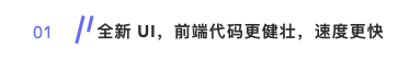 更快:重构了 UI 界面,新 UI 不仅用户响应速度提高数十倍,开发者构建速度提高数百倍; 更强:带来了许多振奋人心的新功能,如数据质量保证、自定义时区、新增多个任务支持和多个告警插件; 更现代化:新 UI 除了更快外,大到页面布局,细到图标样式都更加现代化; 更易维护:后端服务拆分更加符合容器化和微服务化的发展趋势,还能明确各个服务的职责,让维护更加简单。