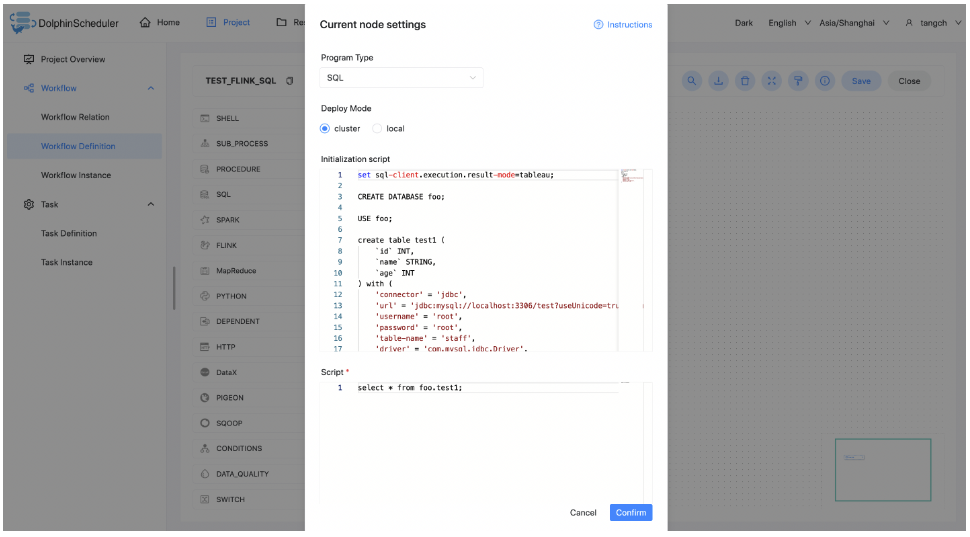 # environment variableexport PYDS_JAVA_GATEWAY_ADDRESS="192.168.1.1"export PYDS_WORKFLOW_USER="custom-user"# file changeDirectly change ~/pydolphinscheudler/config.yaml# CLIpydolphinscheduler config --set java_gateway.address 192.168.1.1pydolphinscheduler config --set java_gateway.address 192.168.1.1 --set java_gateway.port 25334