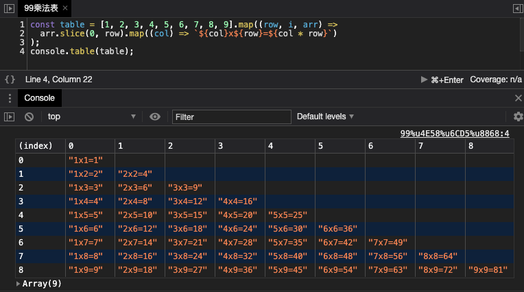 我们通过从 九九乘法表 里找规律,以代码的形式完成了乘法表的生成,借以分享了几个高级的数组用法。希望读者朋友们以后面对数组时,不仅是熟悉传统的for