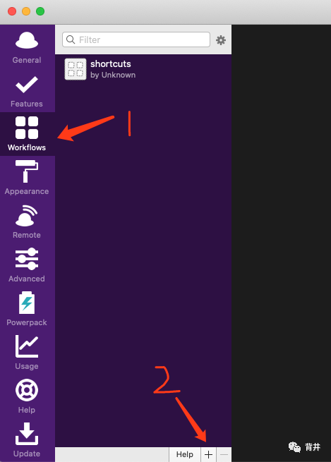 选中左侧 Workflow 面板,并点击下方 + 按钮
